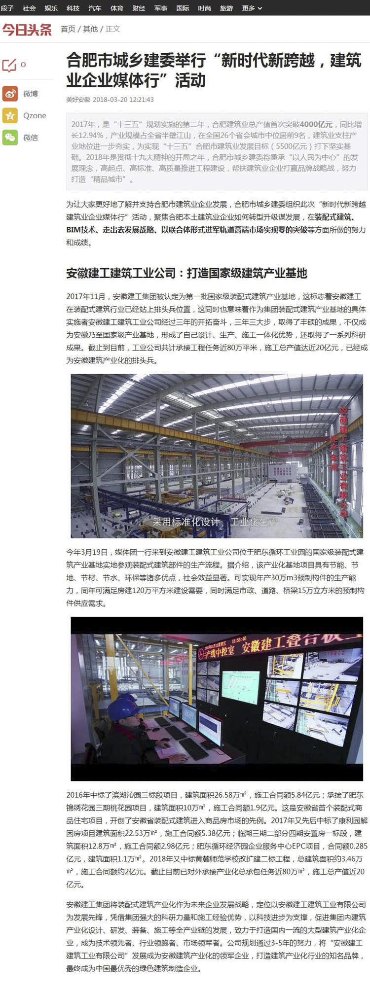 今日頭條、巴士頭條、安徽建筑業——合肥市城鄉建委舉行“新時代新跨越,建筑業企業媒體行”活動 發布時間:2018-06-13 來源:今日頭條、巴士頭條、安徽建筑業 撰稿人:今日頭條、巴士頭條、安徽建筑業 瀏覽次數:12226