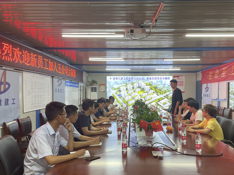 7月15日下午,安徽三建五公司在君逸花園項目召開新大學生入職座談會,并為新入職大學生量身定制一份培訓“課程表”。分公司領導班子、5名新入職大學生及2名2020年入職職工參加座談會。