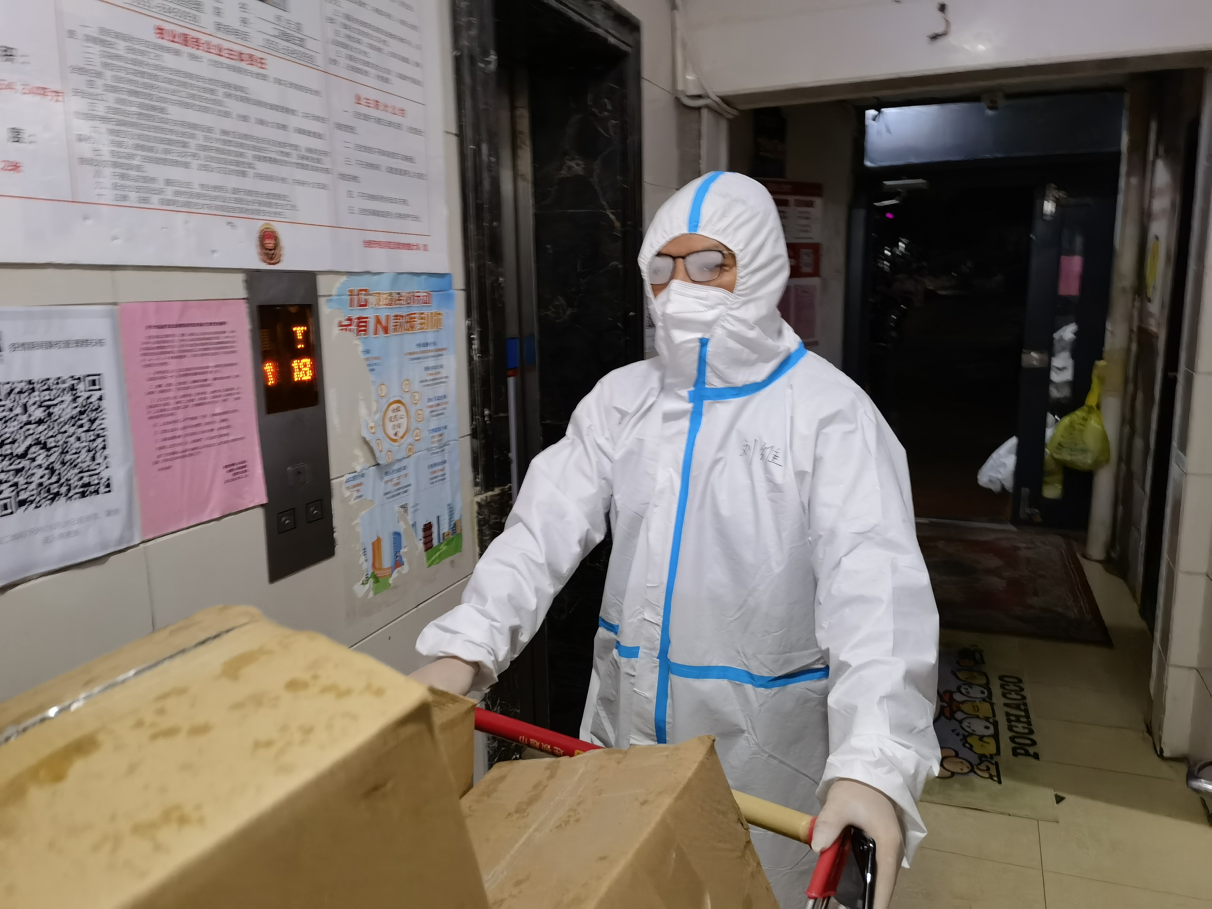 10月27日,合肥市濱湖區許多小區實行了封閉管理,社區工作人員工作量倍增,人手嚴重不足。得知情況后,八公司副經理楊輝攜手妻子一起加入這場戰“疫”,作為團隊中年齡較大的志愿者,也是一名黨員,他主動要求上門協助給業主做核酸取樣,分發抗原檢測試劑和生活物資,連續工作多天的他仍然保持著高昂的工作熱情,在社區志愿者中廣受好評。
