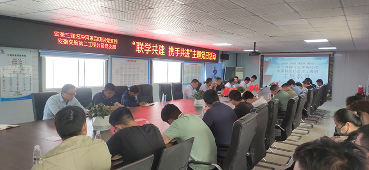 為扎實推進學習貫徹習近平新時代中國特色社會主義思想主題教育,進一步提升黨建與項目生產經營工作深度融合,5月23日下午,安徽三建潭沖河家園項目黨支部聯合安徽交航第二工程公司黨支部在共同施工的潭沖河家園項目開展“聯學共建 攜手共進”主題黨日活動。安徽三建四公司、交航二公司黨政負責人及項目黨員、部分項目骨干30余人參加活動。