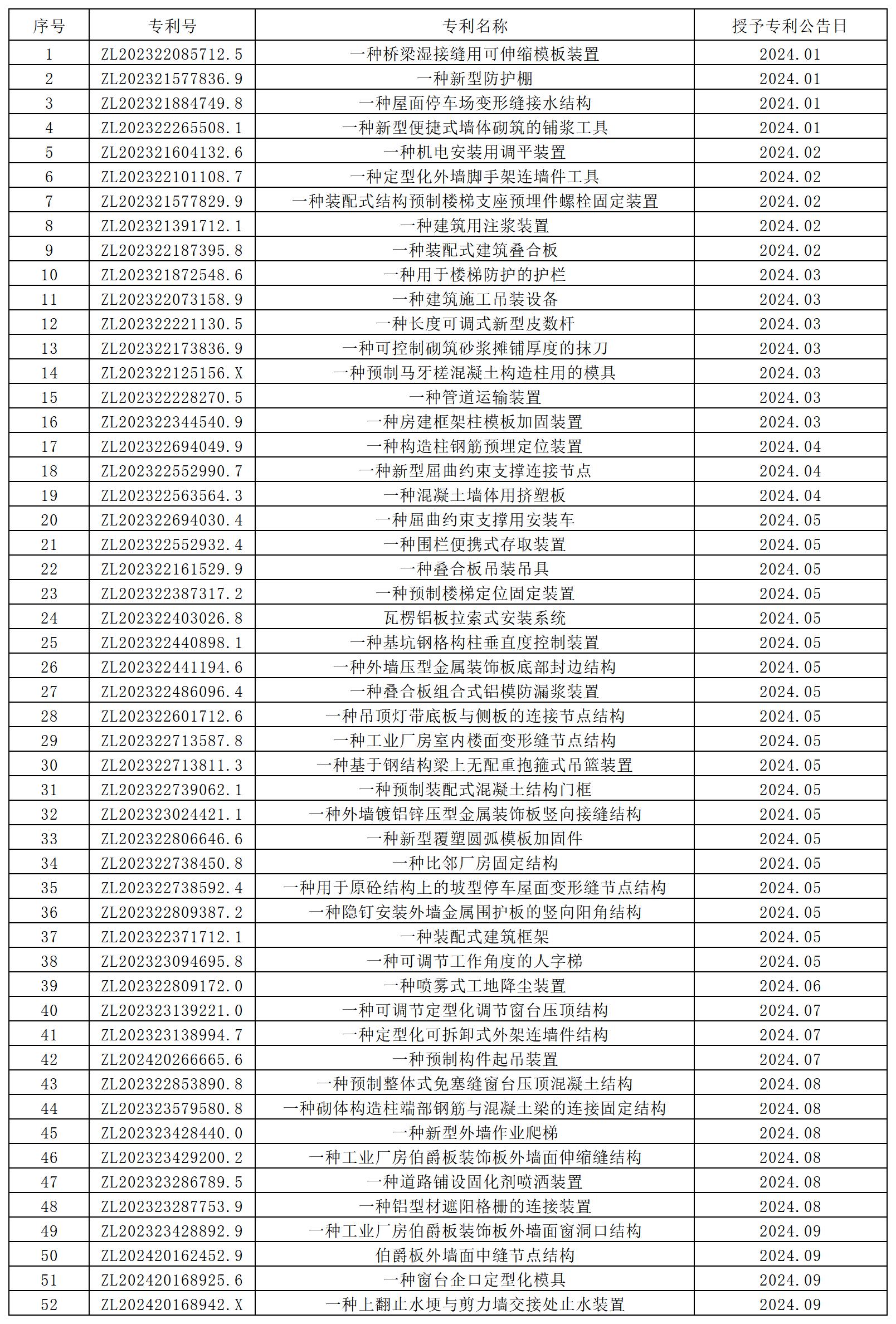 2024年公司授權實用新型專利52項。