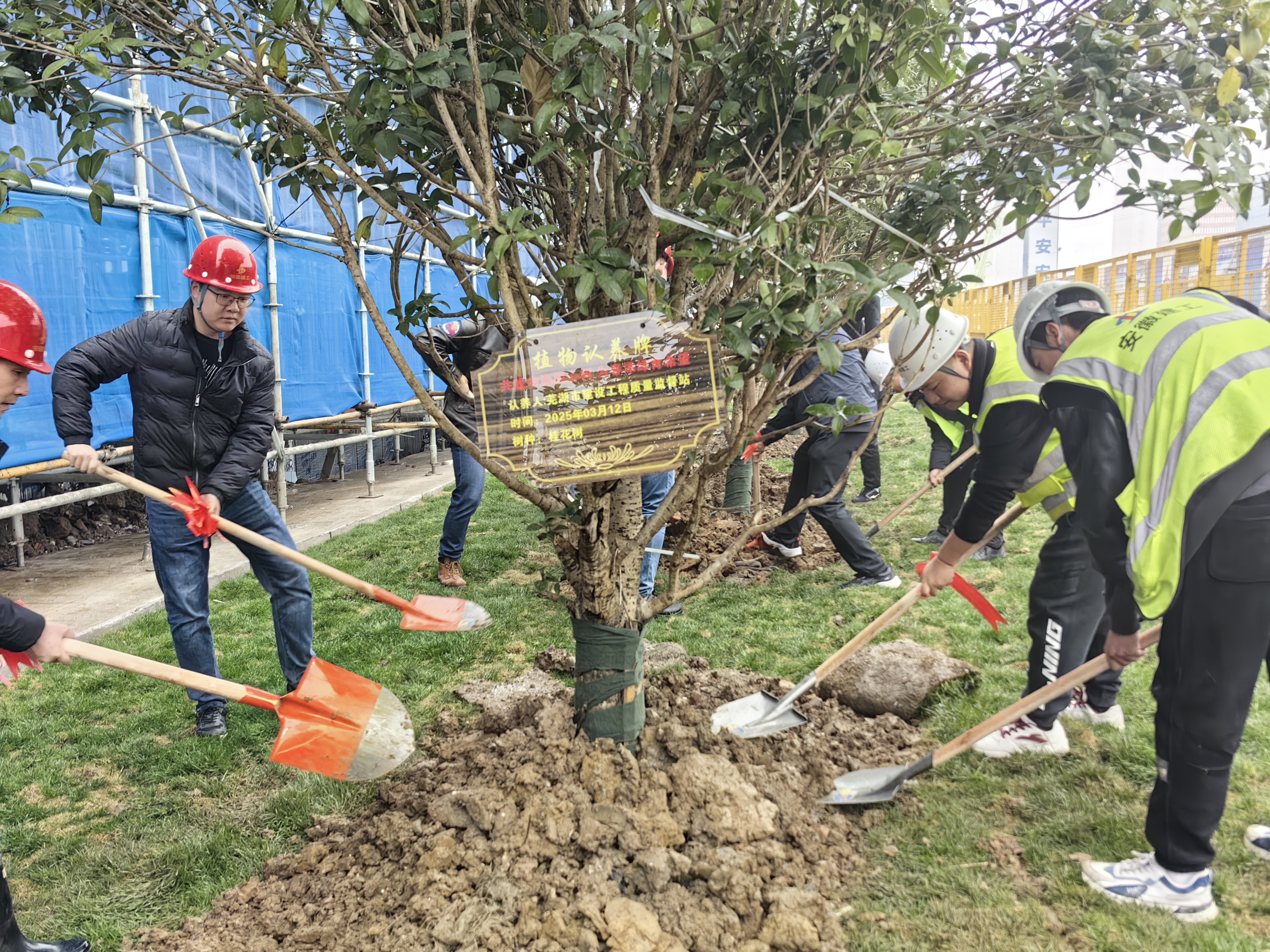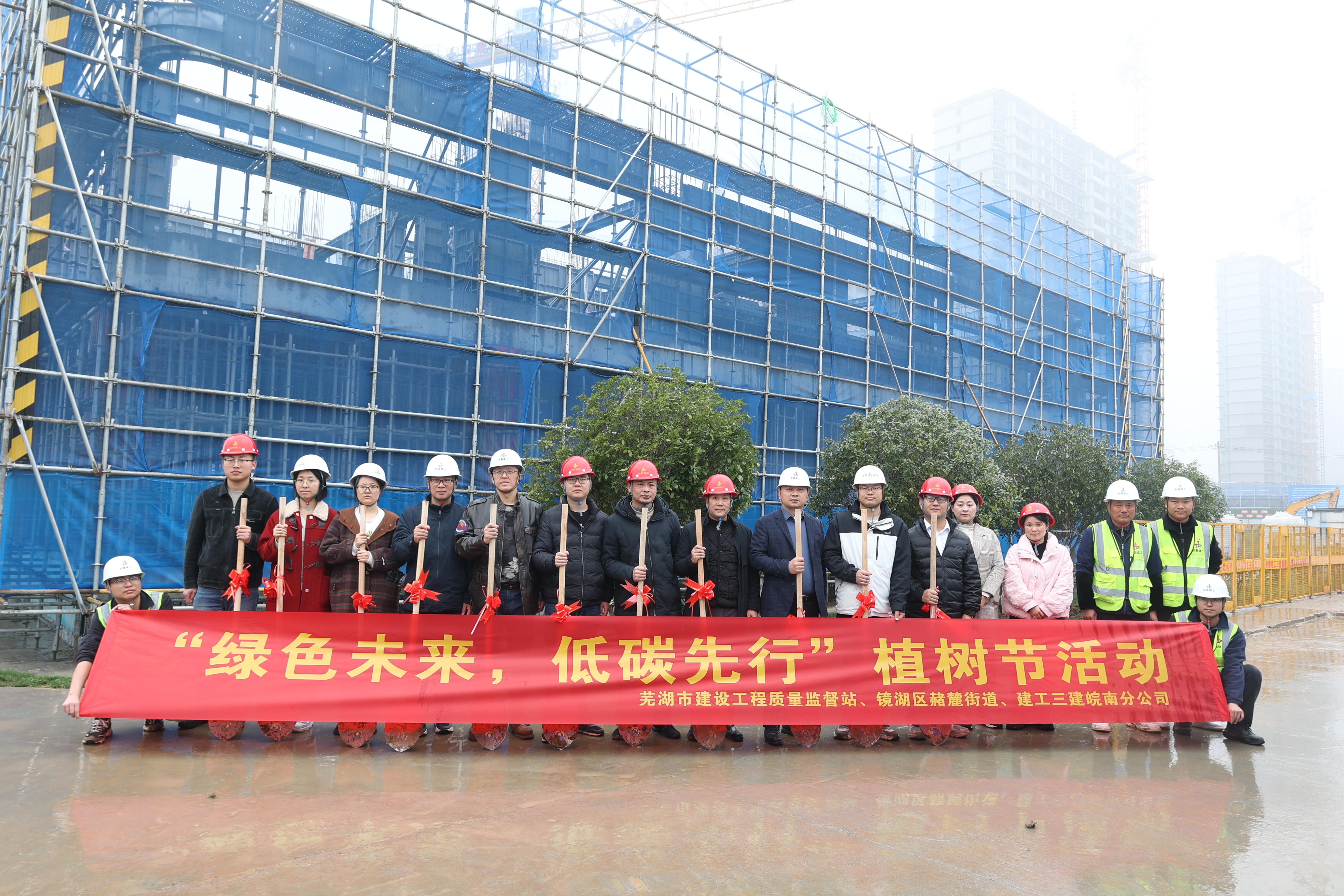 植樹節丨建工三建蕪湖老船廠1900項目聯合蕪湖市建設工程質量監督站、鏡湖區赭麓街道開展植樹節活動