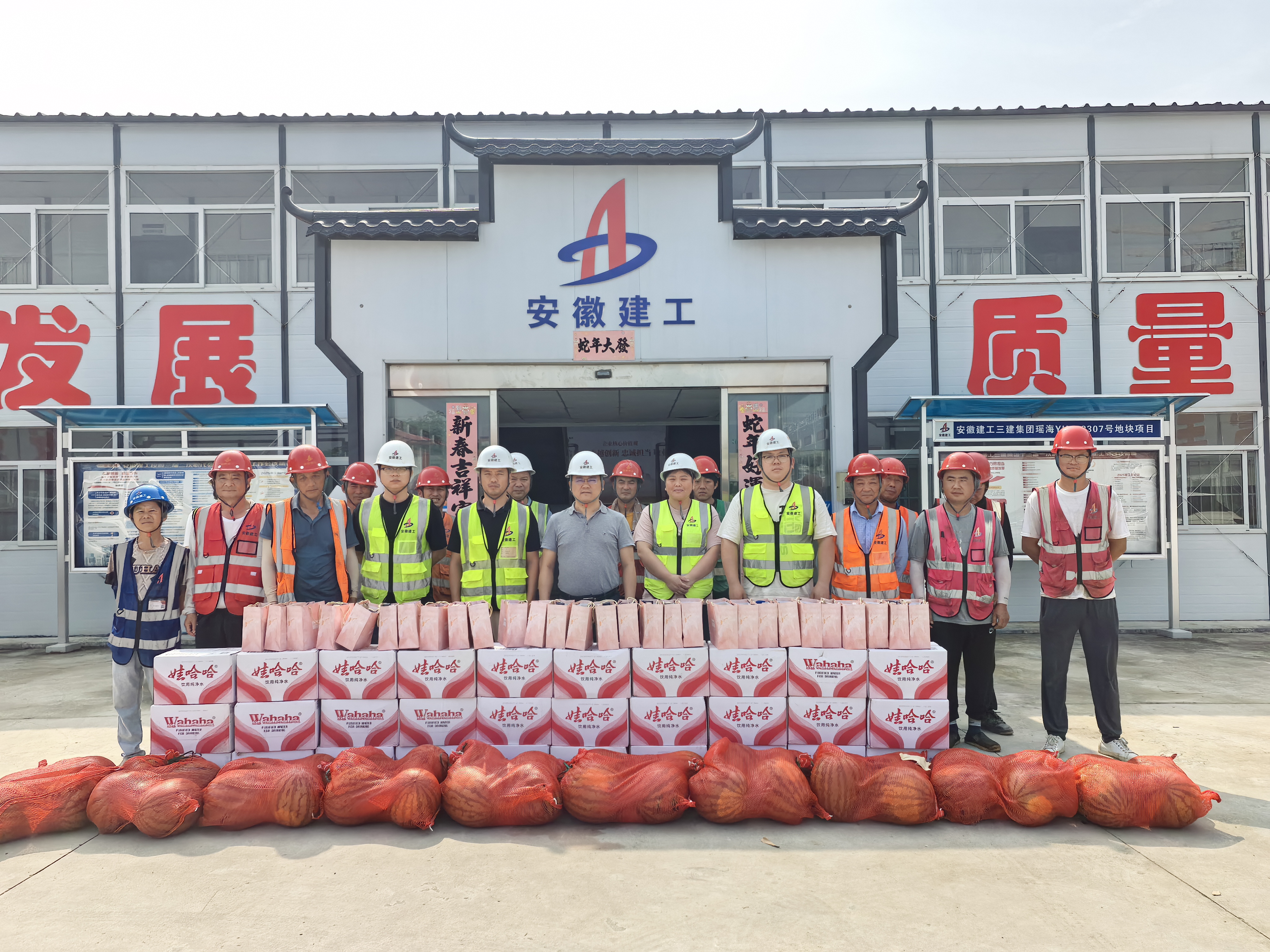 在各項目現(xiàn)場,分公司工作人員將精心準備的礦泉水、解暑涼茶、藿香正氣水、風油精、清涼毛巾等防暑降溫物資一一送到一線員工手中,為他們送去夏日清涼。今年,結(jié)合高溫天氣特點,各項目安全管理部門進一步細化了項目防暑措施:一是調(diào)整作業(yè)時間,實行“做兩頭、歇中間” 的錯峰施工模式,避開正午高溫時段;二是每日班前會增加防暑知識宣講,檢查降溫設備是否正常運行;三是設置“清涼補給站”,清甜消暑的綠豆湯、金銀花水隨取隨飲,旁邊的應急藥箱里,藿香正氣水、人丹等防暑藥品一應俱全,全天候為員工提供補給。一系列舉措既保障了施工進度,更讓員工在高溫下作業(yè)多了一份安心。
